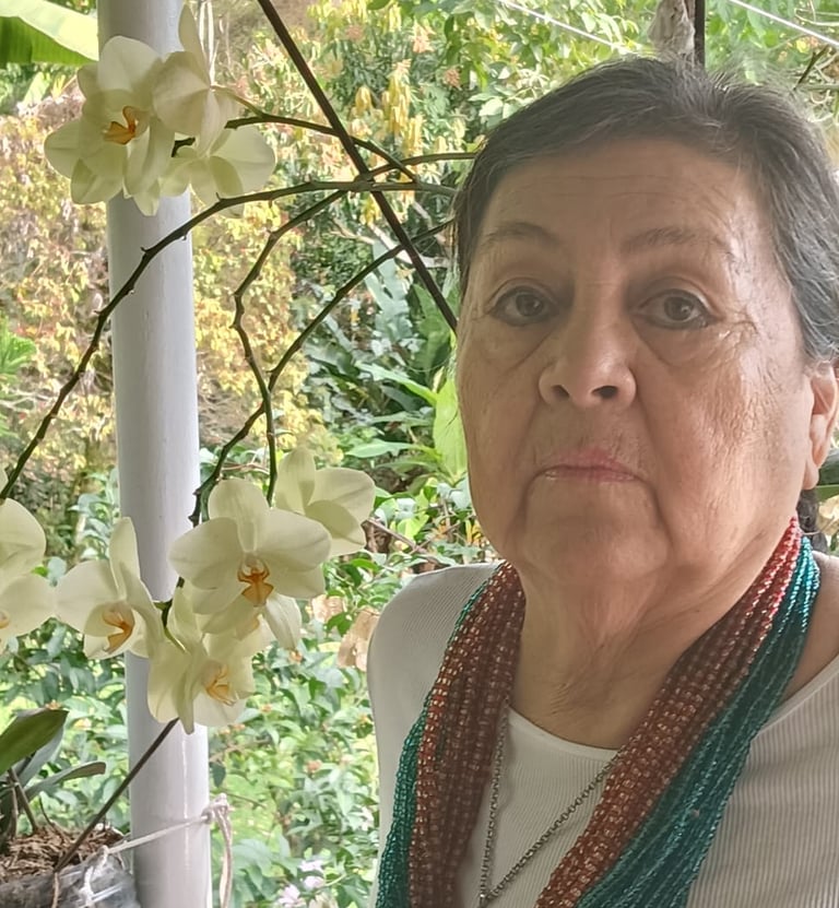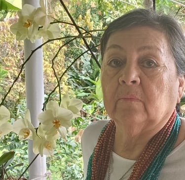 La Abuela Martha es una mujer medicina colombiana, enfermera de profesión y guardiana de una sabiduría que trasciende el tiempo. Desde niña, cuando apenas tenía 7 años, el espíritu del yagé la llamó con dulzura y propósito, abriendo en su corazón un sendero de sanación, entrega y comunión con la Madre Tierra.